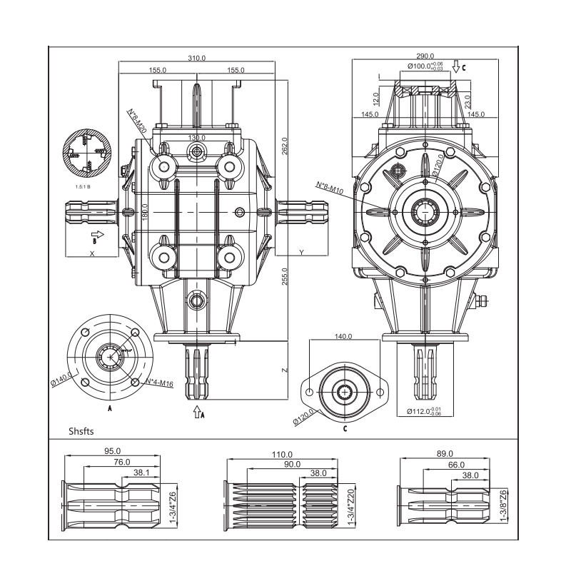 KLF-GC290-B tarjoaa erilaisia voimansiirtosuhteita, jotka on mukautettava laajaan valikoimaan erityyppisiä maatalouskoneiden laitteita, mukaan lukien olkimurskaimet ja maatalouden kalvon kierrätyskoneet. Gleason viistevaihteet valmistetaan suurella tarkkuudella, mikä varmistaa suuren verkon tarkkuuden, minimaalisen siirron menetyksen ja suuren energiansiirron tehokkuuden. Tuote on suunniteltu yksisuuntaisella kytkinmekanismilla. Käytön aikana, kun leikkuri -akseli toimii suurella nopeudella, jos traktori yhtäkkiä pysäyttää tehon syötteen, leikkurin akselin hitaus voi olla liian suuri. Yhdensuuntainen kytkin suojaa tehokkaasti hammaspyöriä ja akselia tämän äkillisen pysähdyksen aiheuttamilta vaurioilta.